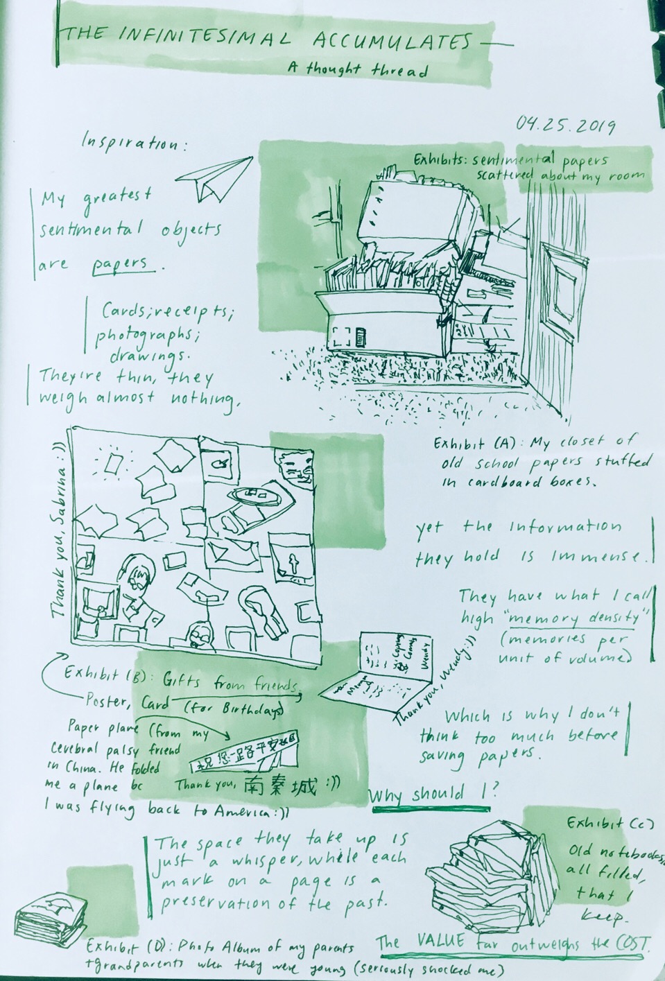 My greatest sentimental objects are papers. Cards; drawings; receipts; photographs: they're thin, they weigh almost nothing, yet the information they hold is immense. They have high "memory density" (memories per unit of volume).